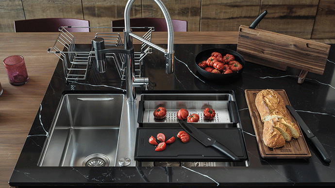 Suvremeni sudoper karakteriziraju sofisticirani detalji koji olakšavaju rad u kuhinji. Osim praktične osnovne opreme, postoji i ekskluzivni dodatni pribor, koji sudoper pretvara u višenamjensku radnu površinu. Vrhunac je inovativni Franke „PUSH-PULL“ daljinski upravljač za otvaranje/zatvaranje odvodnog ventila. Inteligentan sistem: veći komfor, manje posla.
